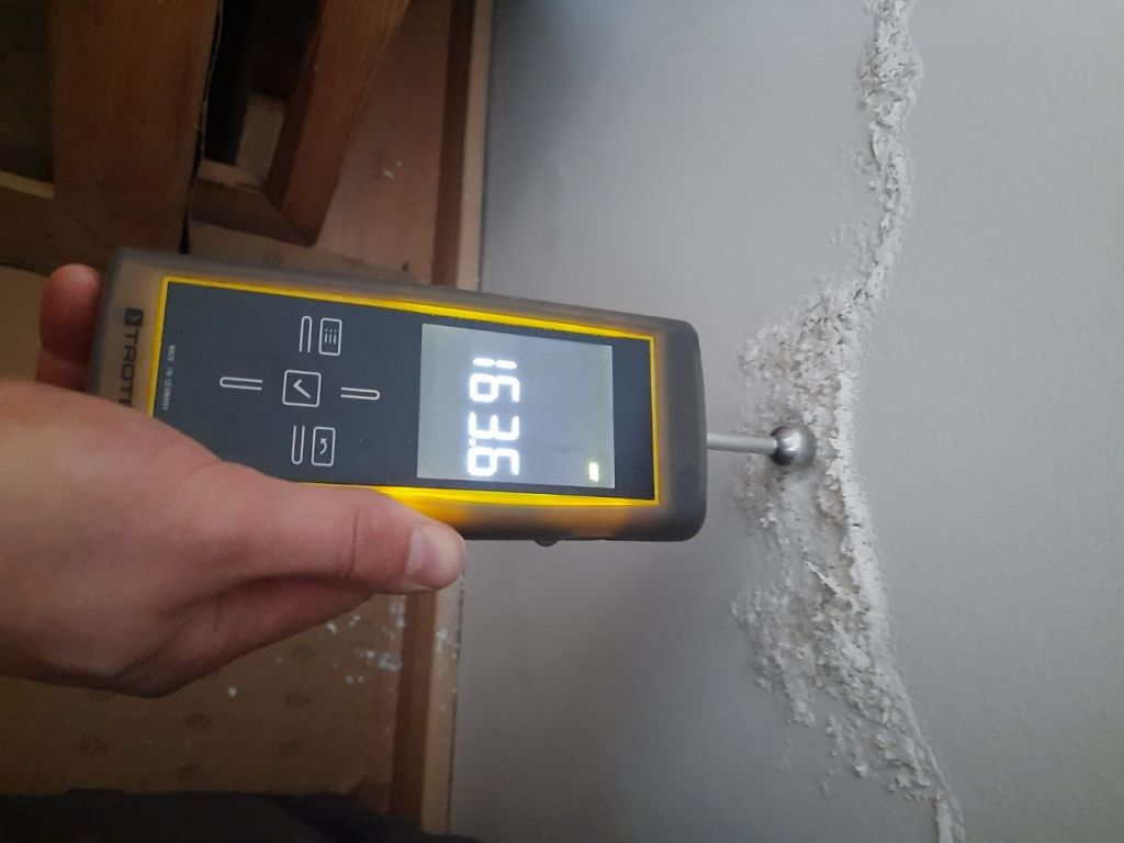Jeżeli mokra ściana nie jest pomalowana, bo np. zalaniu uległo mieszkanie w stanie deweloperskim to po pomiarze zawilgocenia i obliczeniu kubatury pomieszczenia wstawiamy odpowiednią ilość osuszaczy i wentylatorów pamiętając równocześnie o zachowaniu optymalnej temperatury do osuszania pomieszczenia. Dodatkowo pomocne mogą okazać się nagrzewnice i panele na podczerwień.